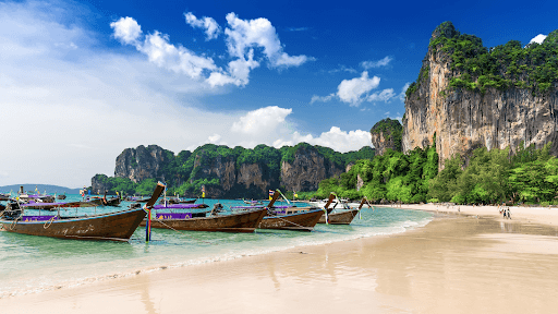 - Krabi: dramatic limestone cliffs, Railay Beach, and mangrove forests.