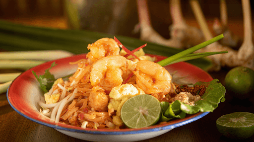 - Pad Thai: fideos salteados con gambas, pollo o tofu, huevo y cacahuetes.